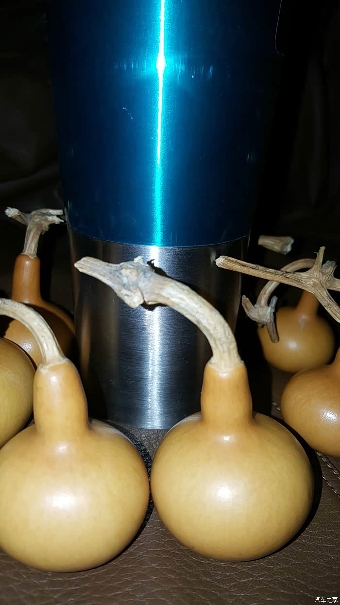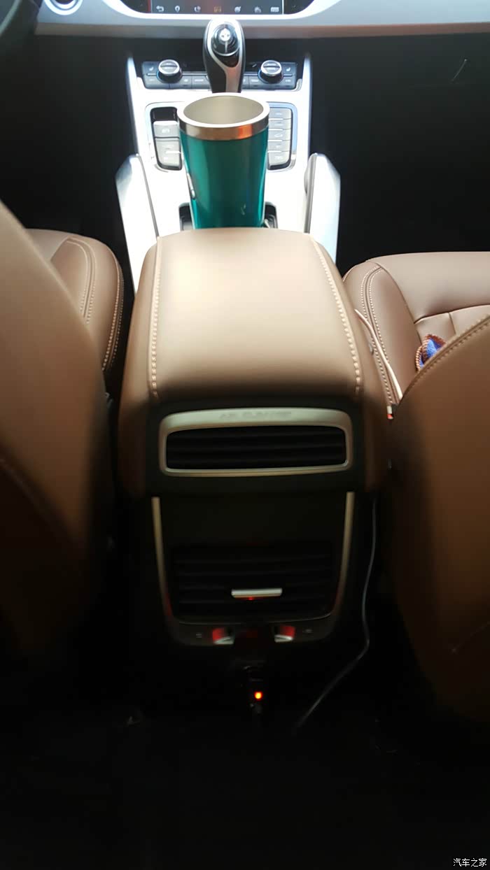 从后座往前看,杯体碧蓝,爽心悦目,还颇具车内美学系统啊,美~