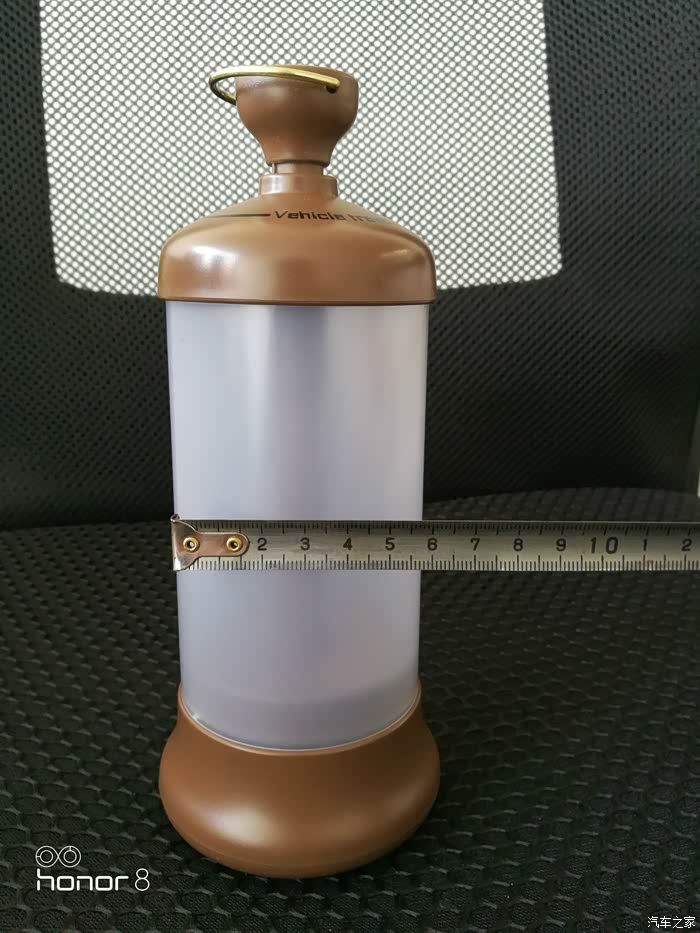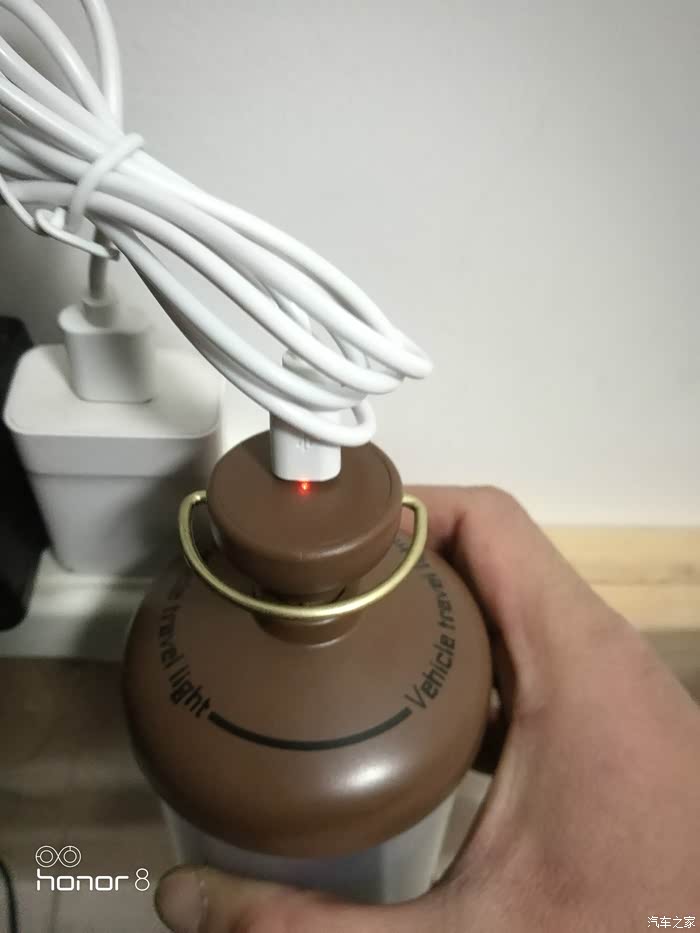 灯顶端,直径约30毫米,梯形口为充电插口,从图上看相邻的小黑点,实际是LED提示灯,后面结合图片会有介绍~