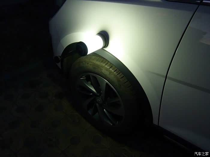 夜间换胎,照明不成问题。