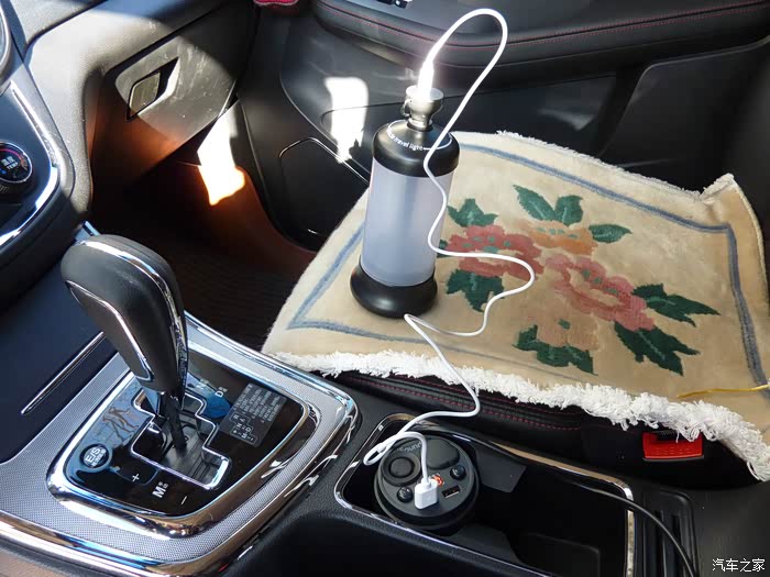 利用车载USB接口给灯充电。