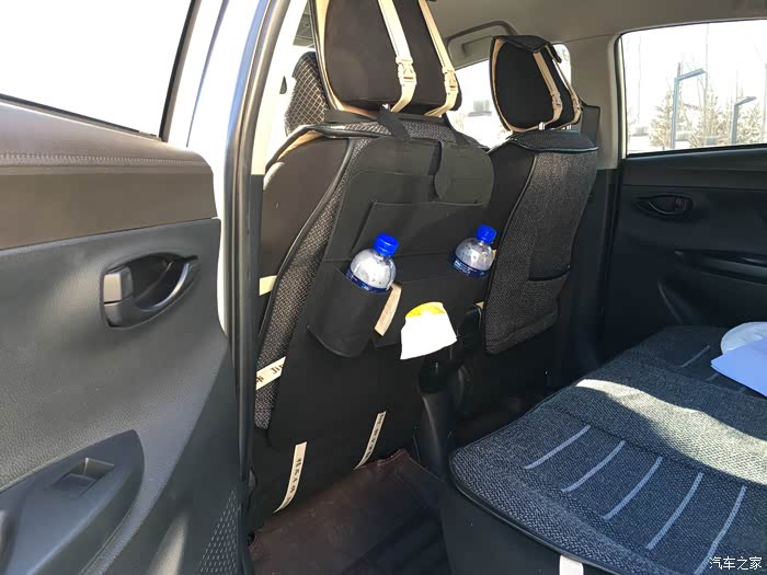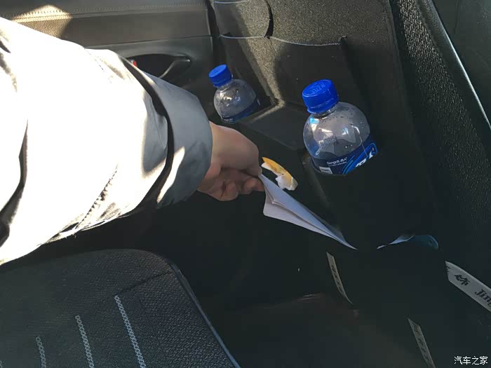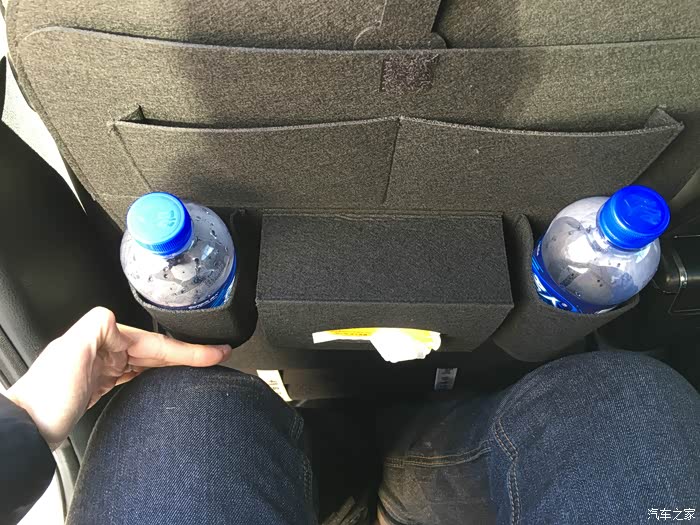 在放入纸抽和矿泉水后,会对后排乘客的腿部空间造成一定的挤压,通过图片可以看到腿部空间已经不是很充足了。
