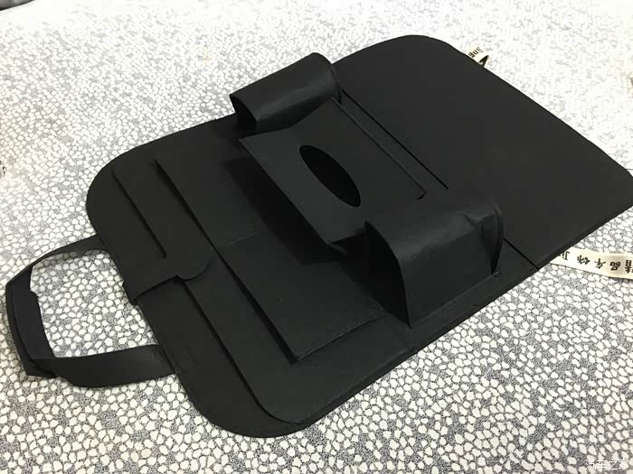这个就是座椅靠背多功能储物袋的全貌了,很幸运得到的产品是黑色的,跟我的内饰颜色很搭,正好座椅套也是黑色的