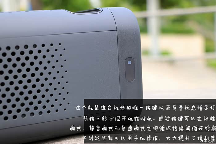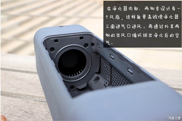 开启车载净化器,调至标准模式,净化器的噪音控制还算不错,应该归功于那两个涡轮风扇。当调至极速模式时,就能听到明显的风扇噪音。不过,在汽车启动后,这种噪音就会被发动机声音稀释大部分,如果再打开音乐,噪音更是微乎其微。