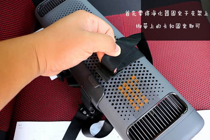 净化器固定支架,塑料的,有一定刚性。尼龙的绑绳,强度不错。