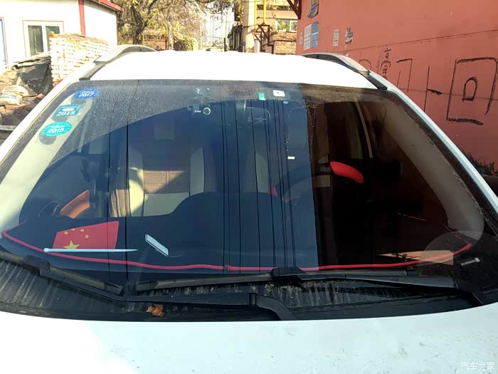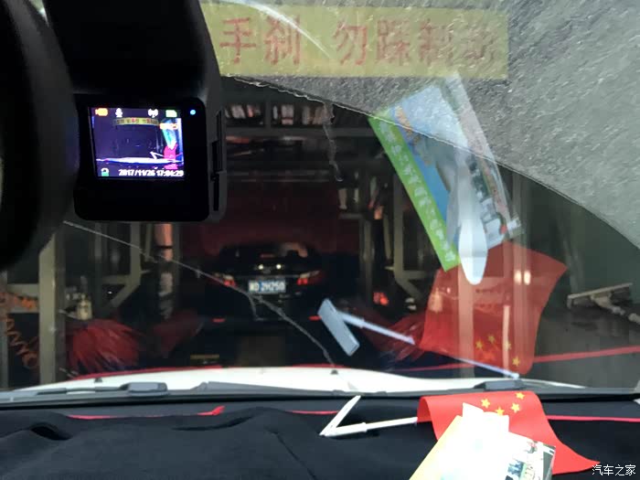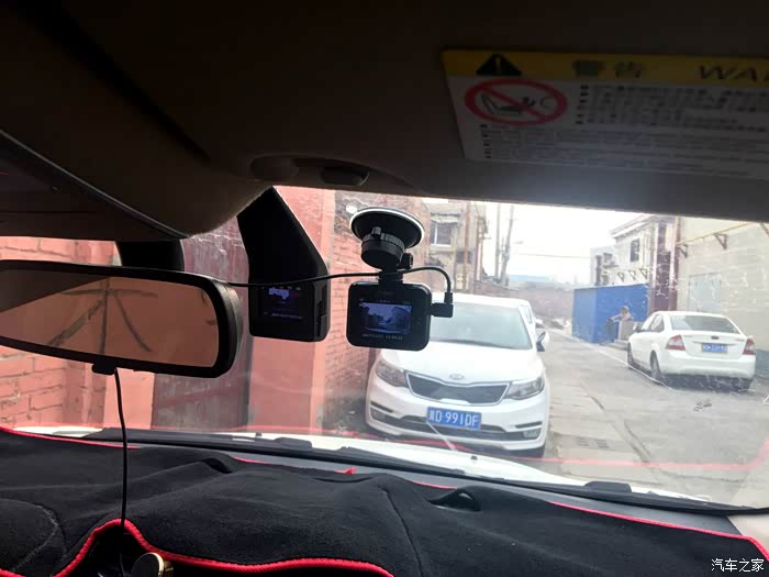 车前看装好的记录仪,有点反光不知道大家能不能看清。