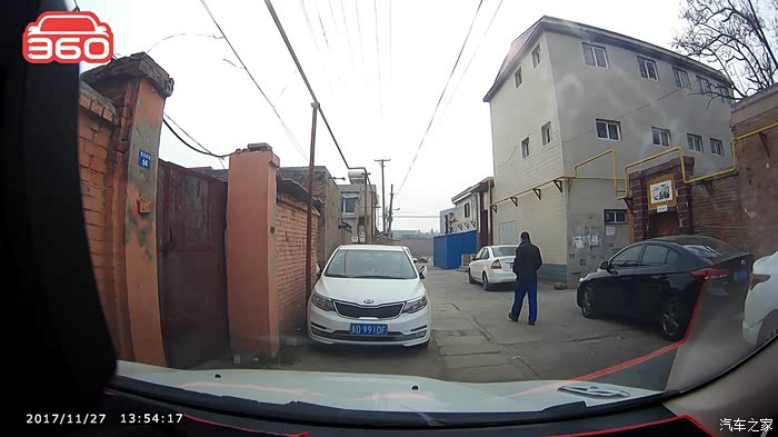 360视角拍的一张图,虽然屏幕左侧有一部分被007边挡住了,还是可以看出360的视角更大一些,能看到白车车尾。