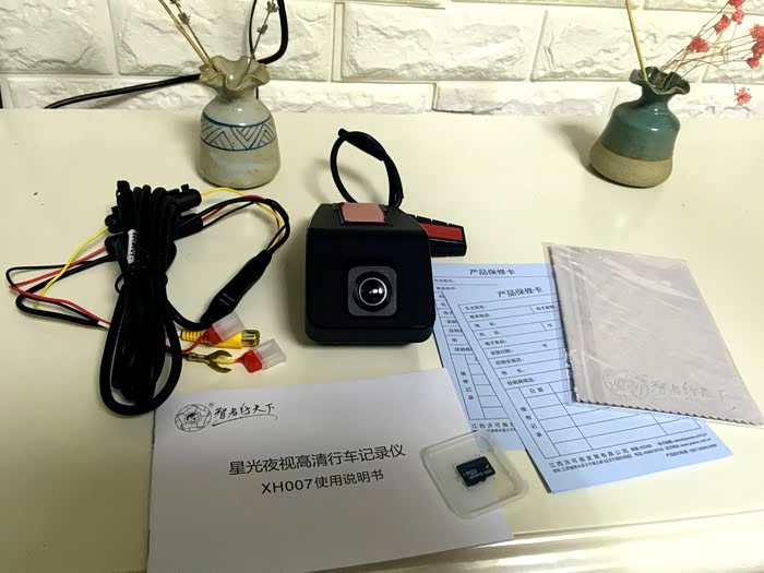 全家福,连接线+记录仪+TF卡+保修卡+使用说明,很全乎。但就是这张图,让我进入了崩溃闹心的13天。
