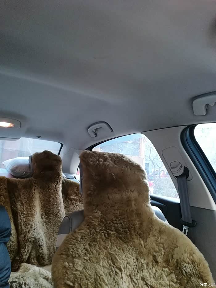 车的内部,北方的天气,没办法已经羊毛垫了
