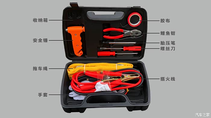 里面的工具感觉是路边货,感觉搭电线+拖车绳+胎压笔感觉还不错,但是做工和材质就一般般了,属于性价比较差。