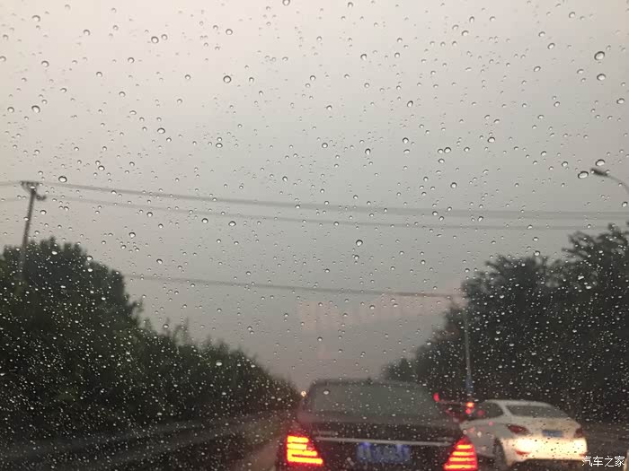 除了毛毛雨的时候,后来不管是中雨还是大雨,风挡上面基本上保持这样。