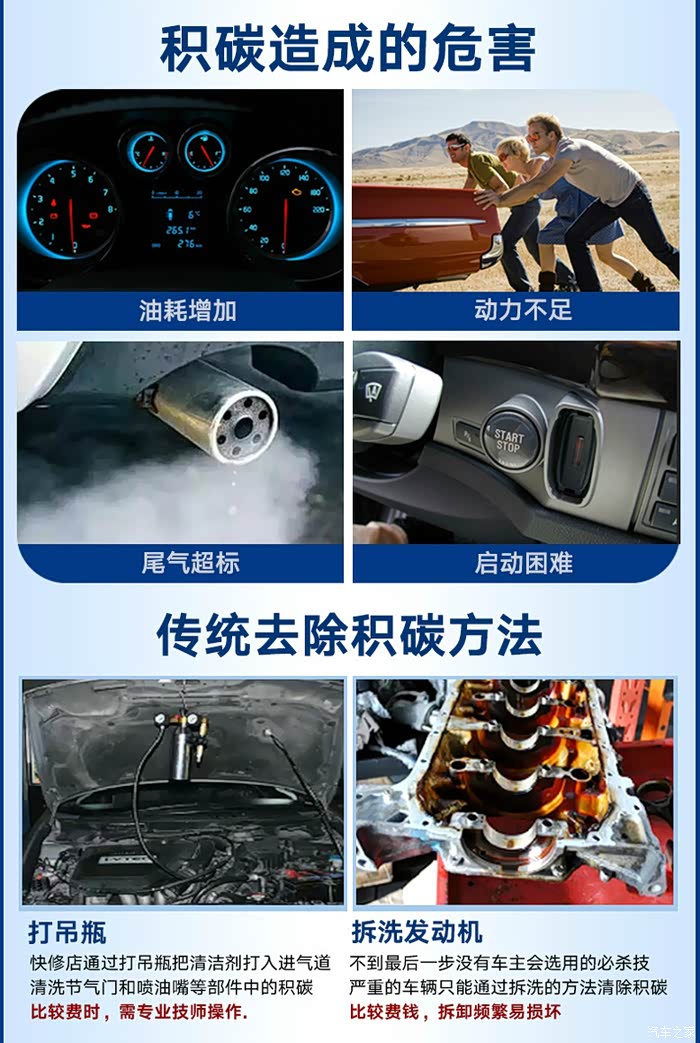 积碳对汽车发动机的危害毋庸置疑,虽然发动机的技术不断更新发展,但对与积碳没有什么更好的办法,用传统的打吊瓶清洗效果甚微,拆发动机清洗又有点大动干戈,费用高昂、耗时耗力不说还存在很大风险。