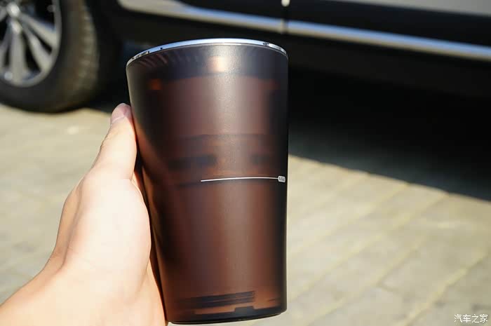 实际装车感受一下。外观与车内内饰非常搭配,非常显档次。而且下窄上宽的设计,应该可以适用于所有的汽车杯架。这两点要点赞。