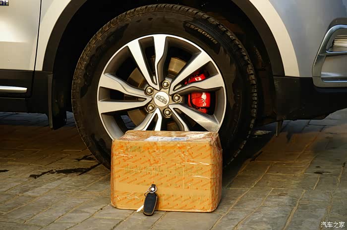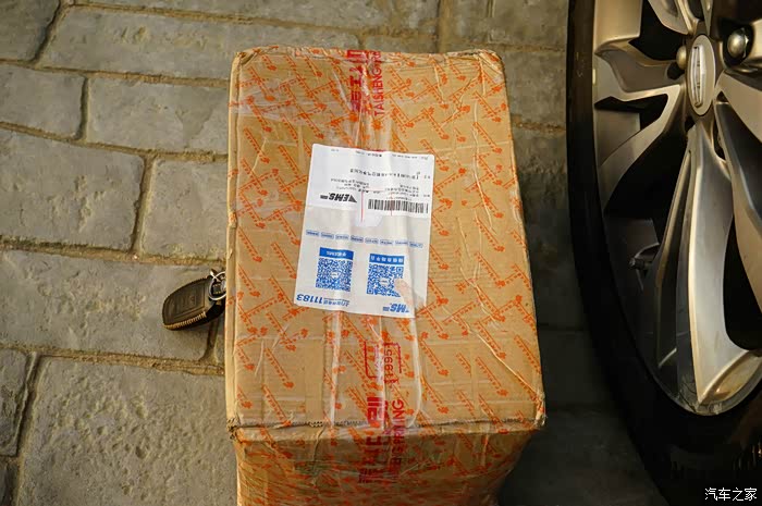 纸箱大小展示,对比18寸轮毂,以及车钥匙。