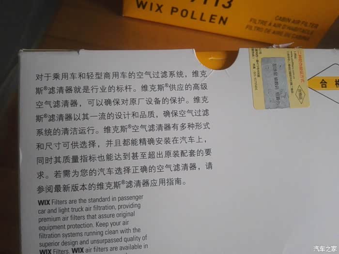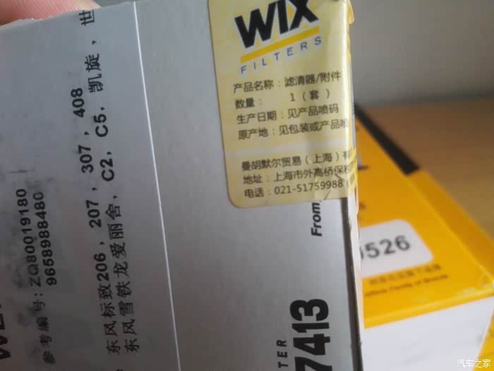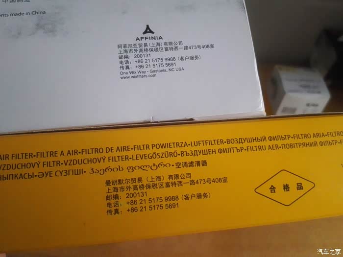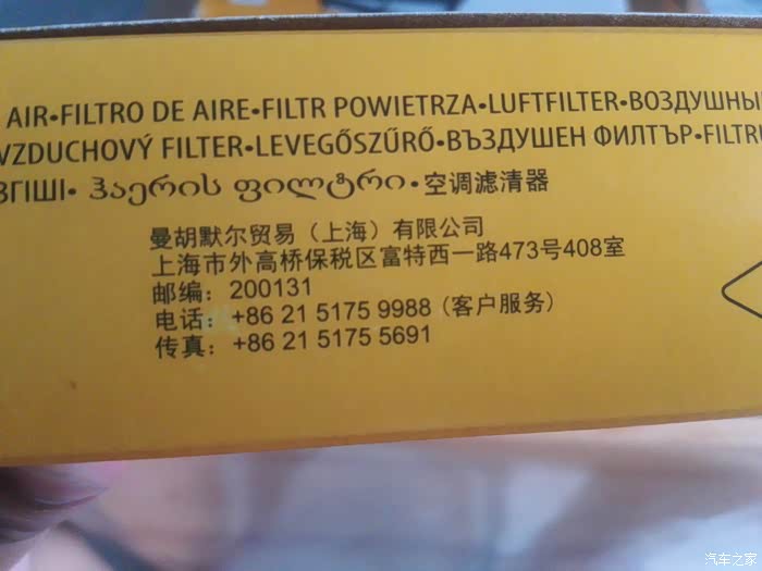 这张比较有意思,上面白色的是空气滤的外包装,标注的是阿菲尼亚贸易公司,而下面黄色的则是曼胡默尔,不知为何。