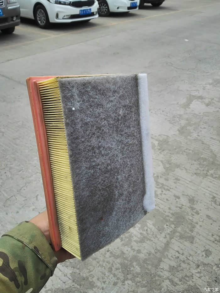 这是上次更换的索菲玛空气滤,能明显看出预滤层的重要性。
