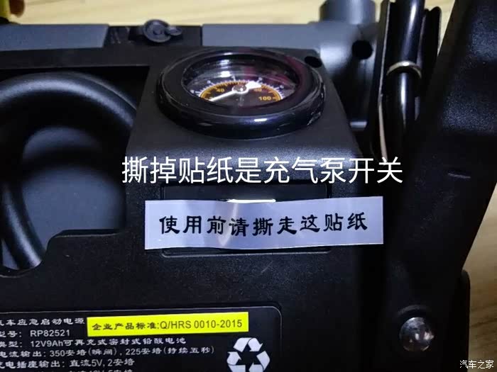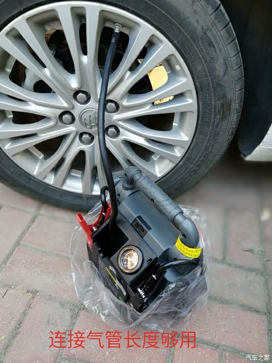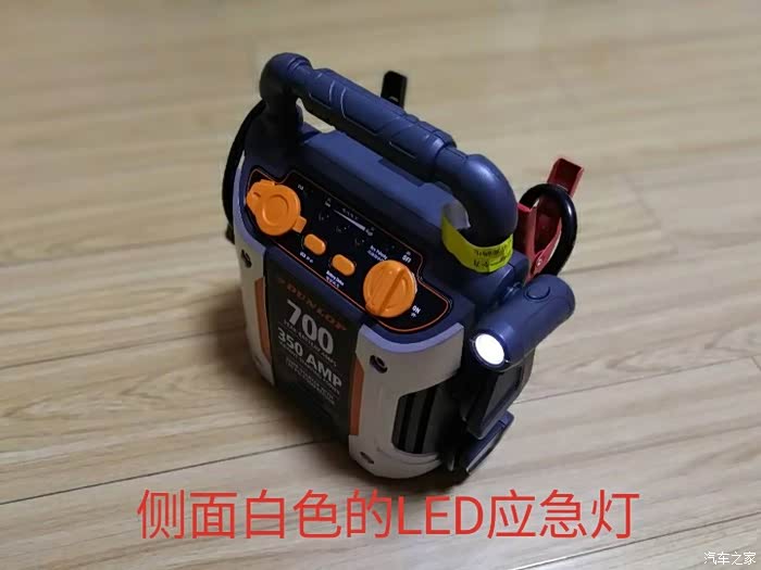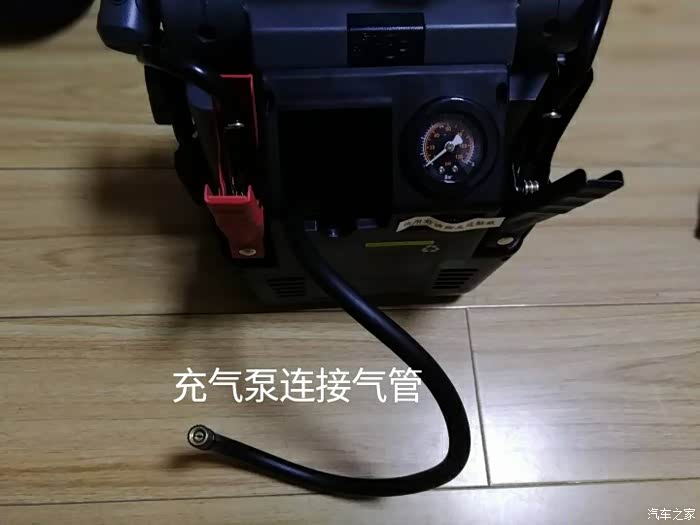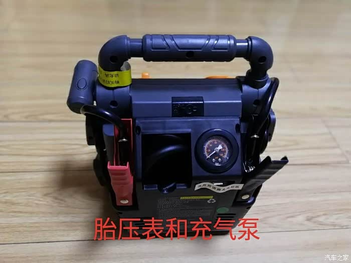 一大早就把充好电的应急启动电源拿下楼去测试,第一步测试打气功能,把车胎气压放至0.68kpa后开始计时打气,共计用时6分钟,噪音不是很大(正常噪音),充气后气管也不是很热,无线充气方便简洁,对比4S所送的气泵直接完胜,因为4S店送的充气泵在充气2分半钟的时候停了,目前为止也没修好,必须差评。