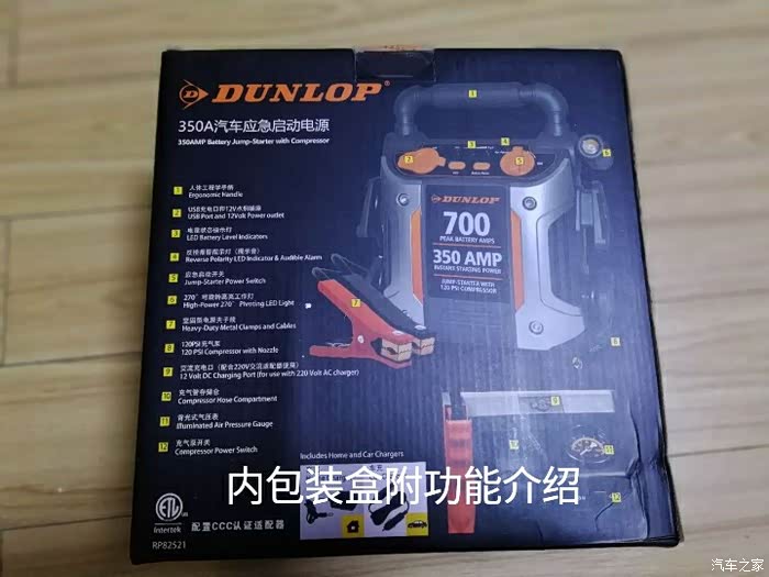 在等待物流到达之前,我认真的对DUNLOP邓禄普做了一些了解,一个生产轮胎的企业从1888年开始至今一直不断创新,质量如何暂放一边不提,它这种不断创新的精神,就可以肯定是家良心企业。首先来了解一下他的发展历程;DUNLOP邓禄普,始于1888年英国,1985年邓禄普轮胎被日本住友收购,成为日本住友橡胶工业集团旗下品牌,世界上最先开发出充气轮胎的企业。2011年 DUNLOP与深圳市海日升源动力汽车户外用品有限公司合作成立源动力中国销售网络,正式将产品线延长至汽车自驾游装备方面,后者成为“DUNLOP”在中国地区汽车户外电器产品唯一授权运营公司,同时享有英国DUNLOP在华地区汽车户外电器品牌所有的权益。2012年 DUNLOP在中国发布“登路普”汽车电器和户外电器,产品包括移动电源车载充电器、移动路由器行车记录仪、户外照明应急照明、车载电器户外影音、汽保工具充气泵、GPS导航户外对讲机、空气净化器测水笔、专用设备等。邓禄普应急电源搭载12V/9Ah铅酸蓄电池,可长时间免维护。在安全方面,指示灯可显示电量,夹子接反也有报警提示。电池有过充、过压、过载、电路短路等保护设计,为自驾出行提供了强大的后备支持力量。
