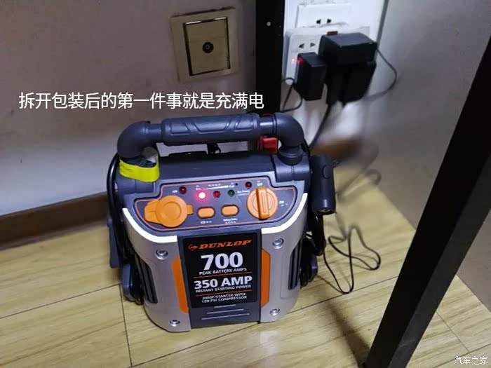 好了,说明书说打开包装后先把电池充满,那就别犹豫了,直接插电为设备充电,明天拿出去试试把车辆电瓶断电后是否可以启动,然后再试试其充气功能如何……