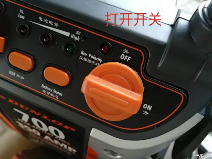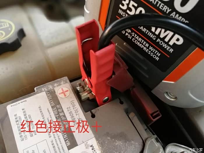 在测试充气功能完毕后,开始测试此产品的第一大功能(应急启动功能),把车辆电瓶负极拆下,夹上应急电源的黑色夹子(负极-),把红色夹子夹在车辆电瓶的(正极+),然后打开应急启动电源的开关,此时车辆已通电,但是在启动的那一瞬间,只听“哒哒哒”的声音,未能启动,查看原因是;此应急电源在车辆无电瓶状态下基本无用,只是可以辅助车辆电瓶在电量不足的情况下可以应急启动而已,所以不能将其作为备用电瓶使用。