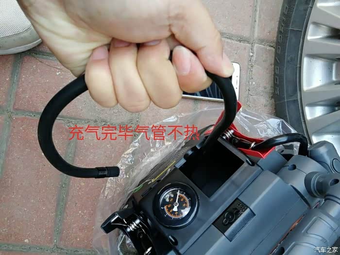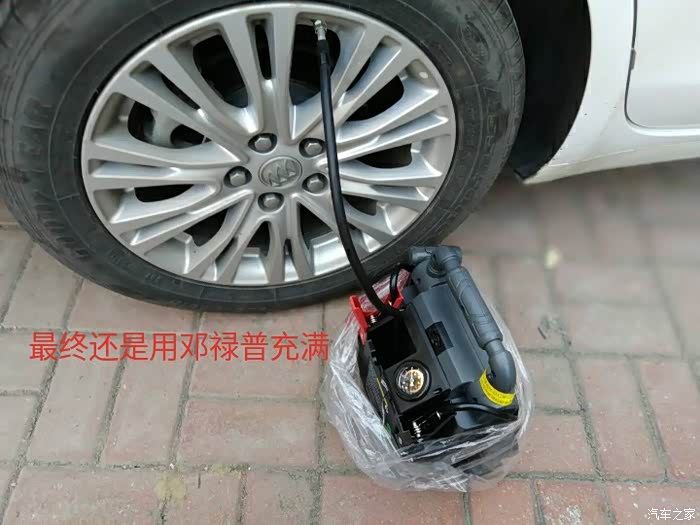 为了对比充气泵的效果,把我买车时4S送的充气泵拿出来比较