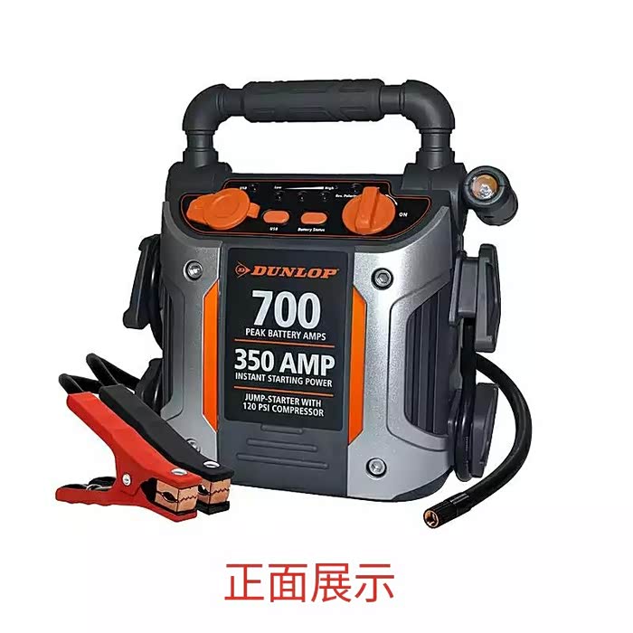 邓禄普应急启动电源有六大功能;①电量指示应急启动功能②12V/5A直流点烟插头输出③专业便携式无绳充气泵④反接报警功能⑤5V/2A USB输出⑥LED应急照明灯。