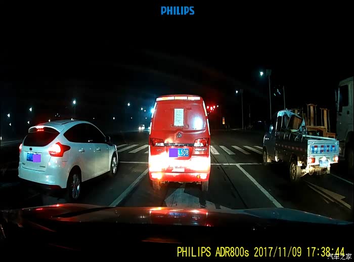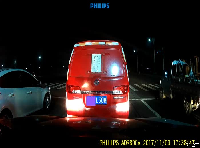 飞利浦夜间效果,还是不错的,不是特别近,左边和前面的车牌都能看清,但是很明显中间的要不左边的清晰很多。
