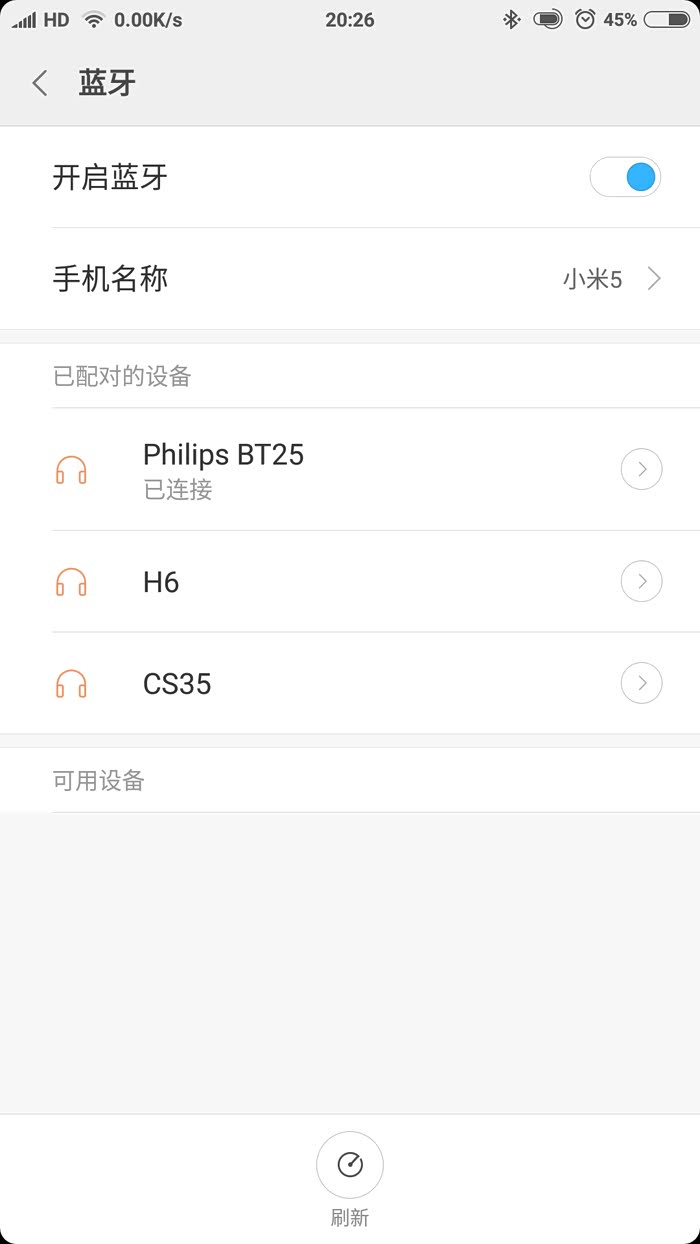 只有之前几个手机蓝牙连接上的记录。