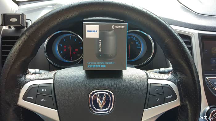 这款飞利浦无线蓝牙小音箱是通过蓝牙进行连接的,刚好也可以试试在车上使用的效果,看看能否顺利使用。