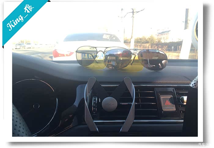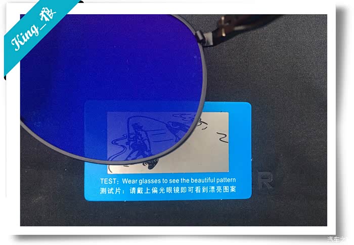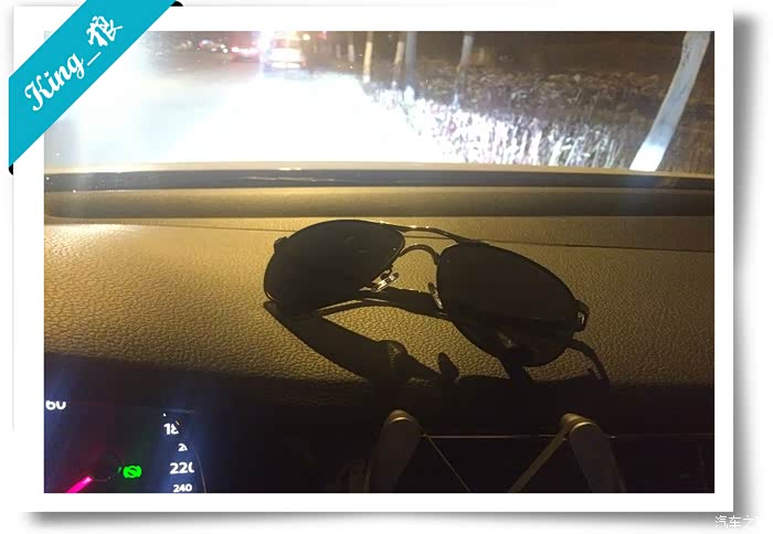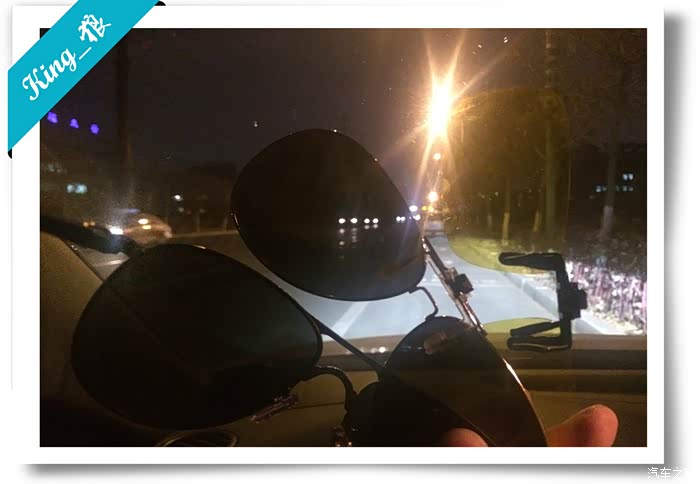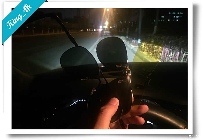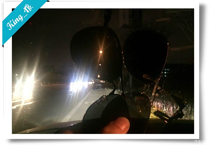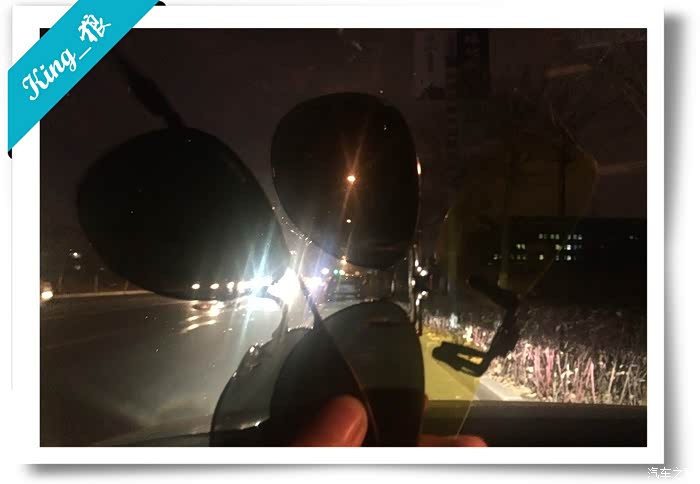 再来用墨镜测试一下对面车灯的光线看看,效果很好,没有眩光了