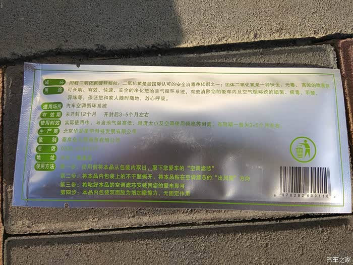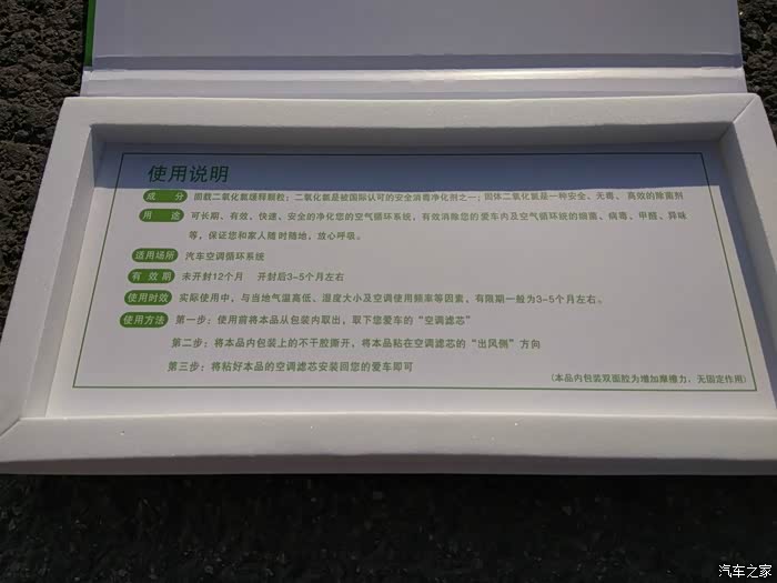 我先简单的介绍一下这次的雨卉空消宝,其实它的成分就是固载二氧化氯缓释颗粒,二氧化氯是被国际认可的安全消毒净化剂之一;固载二氧化氯是一种安全、无毒、高效的除菌剂,它可长期、有效、快速、安全的净化爱车的空气循环系统,有效的消除爱车内及空气循环系统的细菌、病毒、甲醛、异味等。