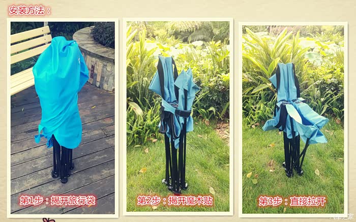 使用方法很简单,拉开旅行袋,揭掉魔术贴一拉即可摆放完成,简单方便。