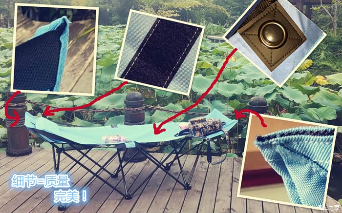 细节=质量,不管是用手摸还是背到身上,都是感觉到质感和背上身分量,不容小觑!赞!绝对值这个价,以前去沃尔玛看过类似的折叠床,卖99,质量真心对不起!