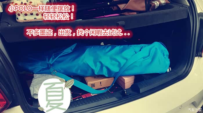 这款折叠床的体积不大,随意丢在车上,我的可是小POLO,这么紧凑的后备箱也是随意就可以了!