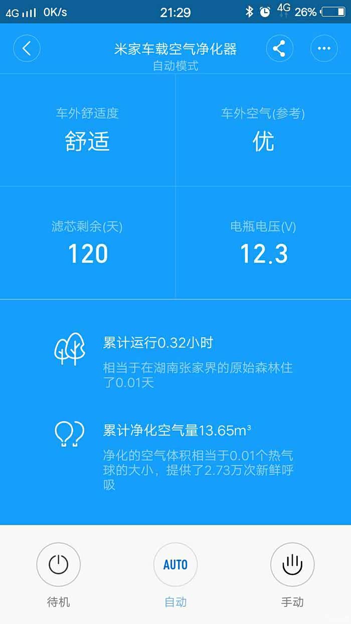 由运行2分钟后运行指示灯变为绿色这说明此时车内空气达到最好。