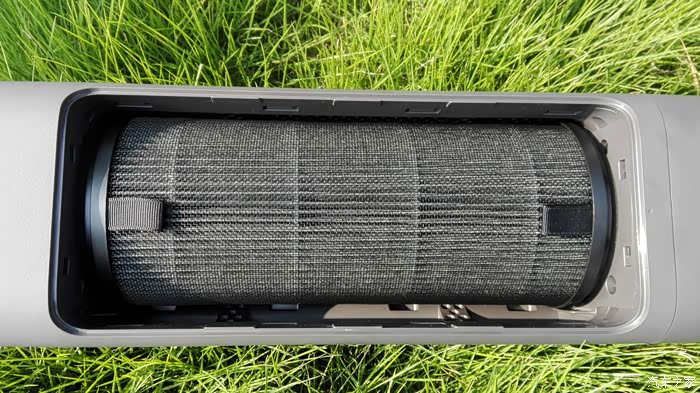 小米车载空气净化器 背面 中间部分是空滤盖板,卡扣很容易拆除。