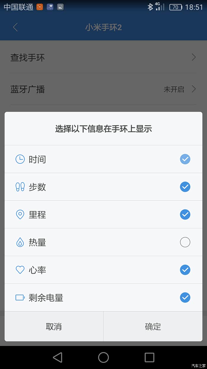 可以在手环屏幕显示的项目。