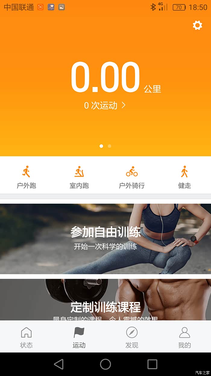 运动页面,跑步时可以记录跑步里程。