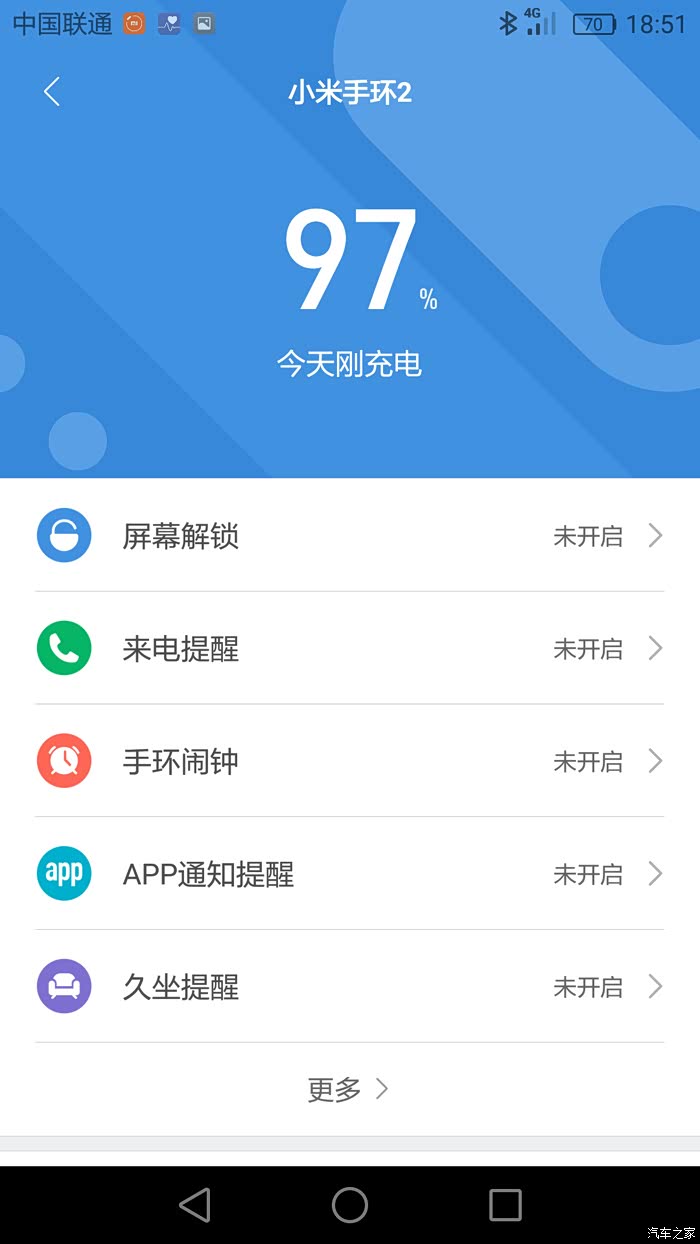 早上手环没电开不了机,用USB口充了一个半小时的电,充到了100%。这是使用一天后的电量,还剩97%。