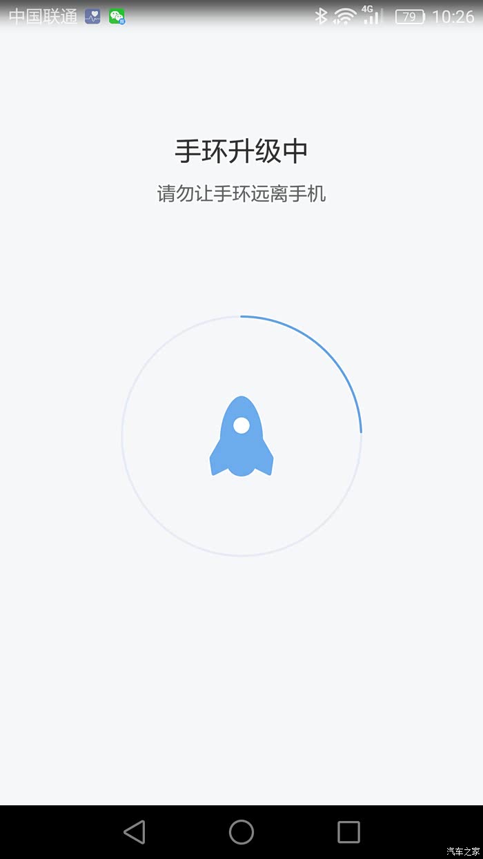 手环充电过程中,在手机上安装了小米运动APP。手环需要配合小米运动才能发挥出它的最大功能。图中是手环正在升级程序中。