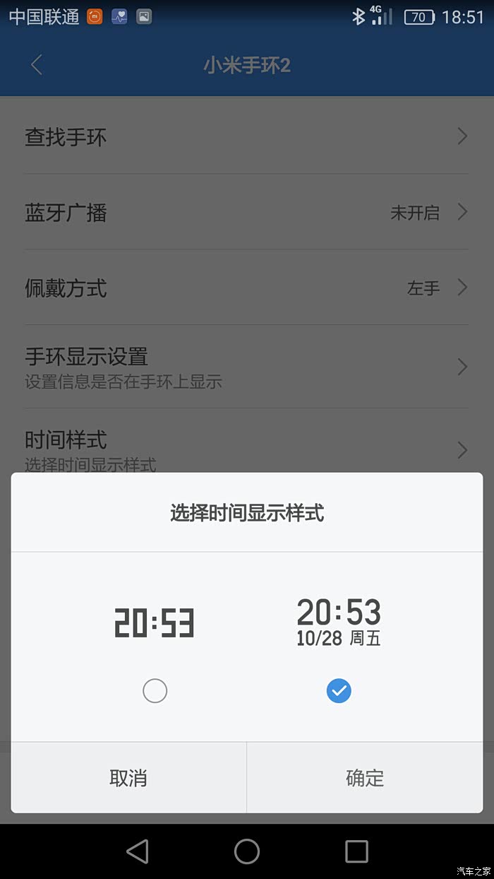 手环设置中可以设置手环显示的时间样式,有两种。