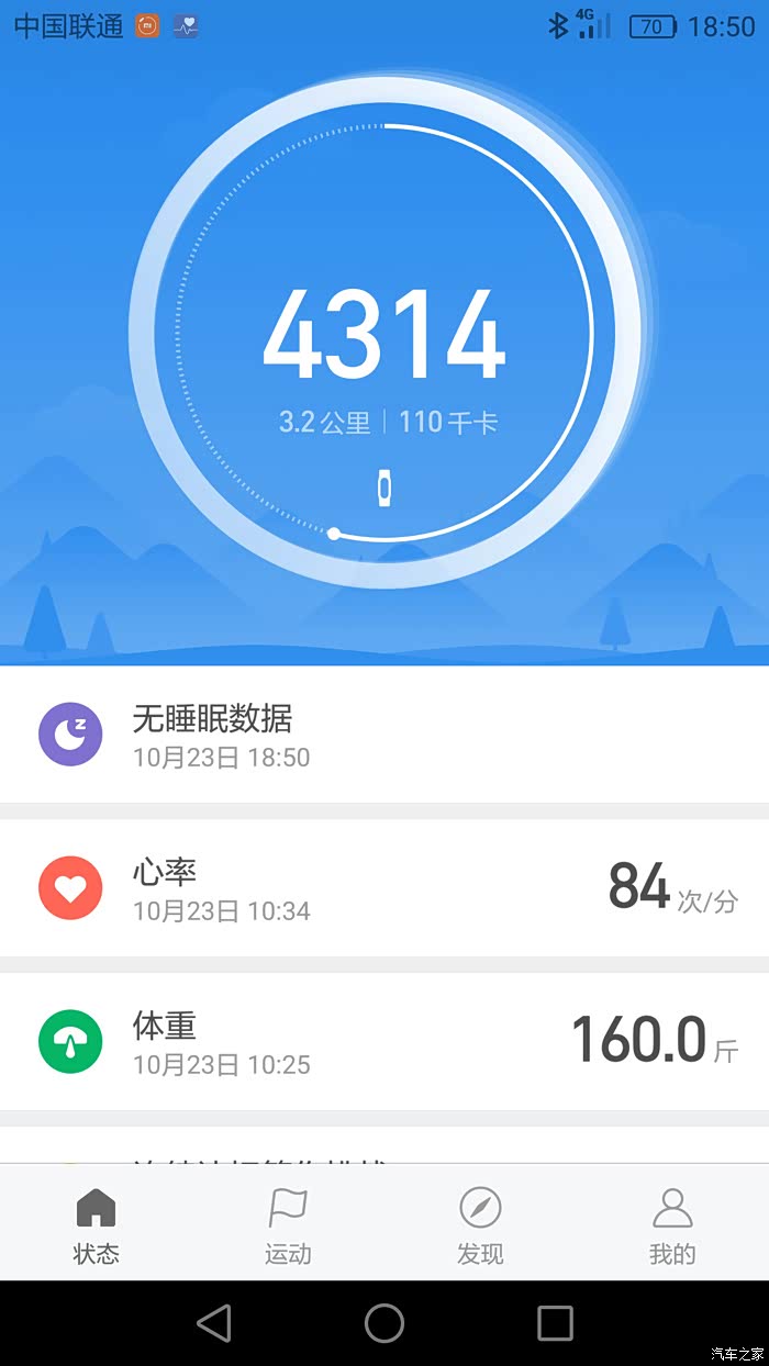 小米运动状态页面,显示今天行走的步数,公里,消耗的热量。还可以查看睡眠状态数据,可以查看心率。