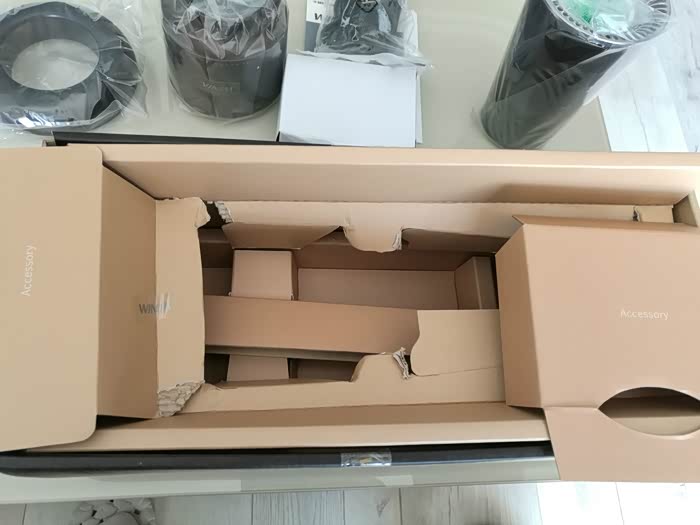 发现很明显的问题,内部包装盒破碎不堪,应该是出厂时就这样装进去的,因为外包装并没有损坏。说明工厂包装部门的质检关存在问题,纸壳包装的目的就是防止产品和配件在物流过程中损坏,结果自身的固定结构就发生改变,如何能保证产品不被摔坏撞坏呢 ?