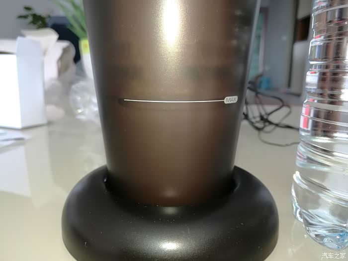20分钟后的储水桶,液面高度没有明显下降,液体消耗很少。看来在车上使用不用担心总加水,水量消耗低也有好处,不至于在狭小的环境内造成湿度过高,从而引起潮湿。