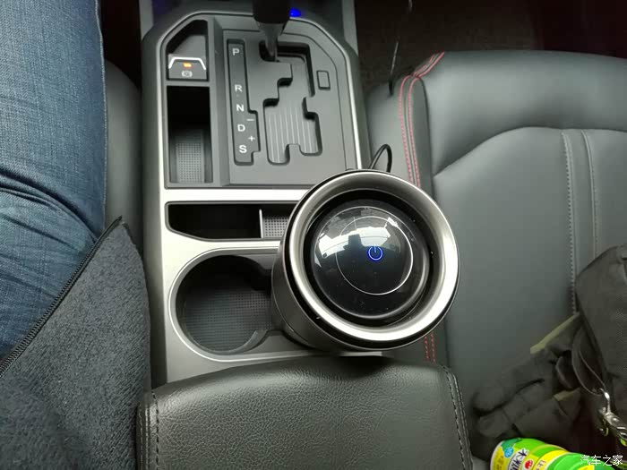 在家里测试完毕,拿到车上测试。17款奔腾X80有2个杯架,水杯放进去比较稳当。