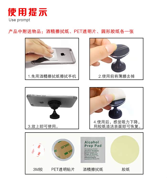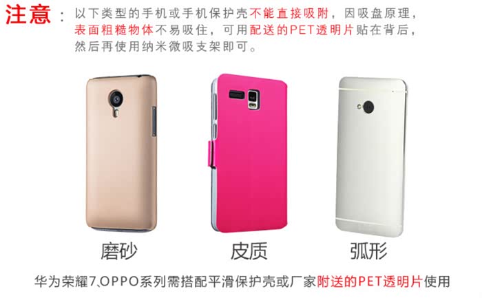 对于吸不牢的,可以配合使用附送的3M透明片贴在手机后盖上