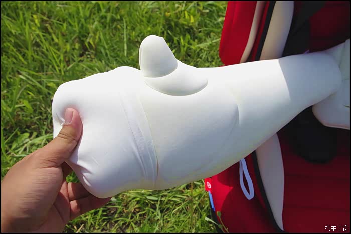 c、对儿童颈部保护欠缺,当孩子睡着的时候头部没有地方放,虽然守护模式大白可以抱着,但是支撑欠缺,这点对比百代适的侧面颈部支撑可以明显看得到。