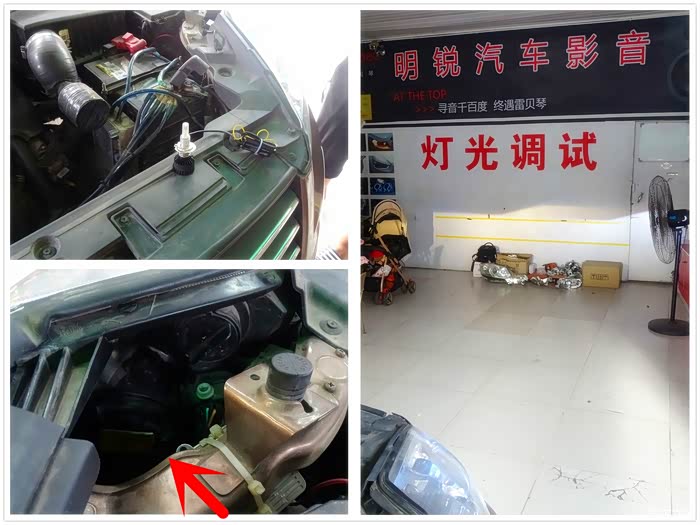 LED灯的安装过程,就不详细描述了,由于我改过带散热带的led灯,密封罩有开孔,所以安装完毕后,箭头所指位置,重新贴了密封。另外安装完毕后,在驾驶室内,如果安静的环境,能听到风扇声音。