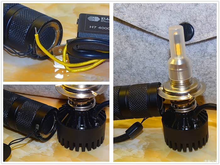 至于灯柱设计,可以说现在都是五花八门的方案,图中左起,分别为普通卤素灯泡,带散热带解码器分离LED灯,灯小亮风扇散热解码器分离LED灯,风扇解码器合一LED灯。