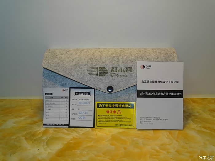 从左到右,依次为装箱清单,产品合格证,安装提醒,产品说明书。这个产品批次为DXLJDZC1,生产日期为6月。这个批次号倒是很容易解读,灯小亮京东众筹第一批次。不知道本次众测的其他车友是什么批次的,我的装箱清单一共七样,东西没有缺少,没有标注有配套粉笔,可能是只有我选择了4000K这个产品,5000K产品的包装清单有个粉笔,实际没有。