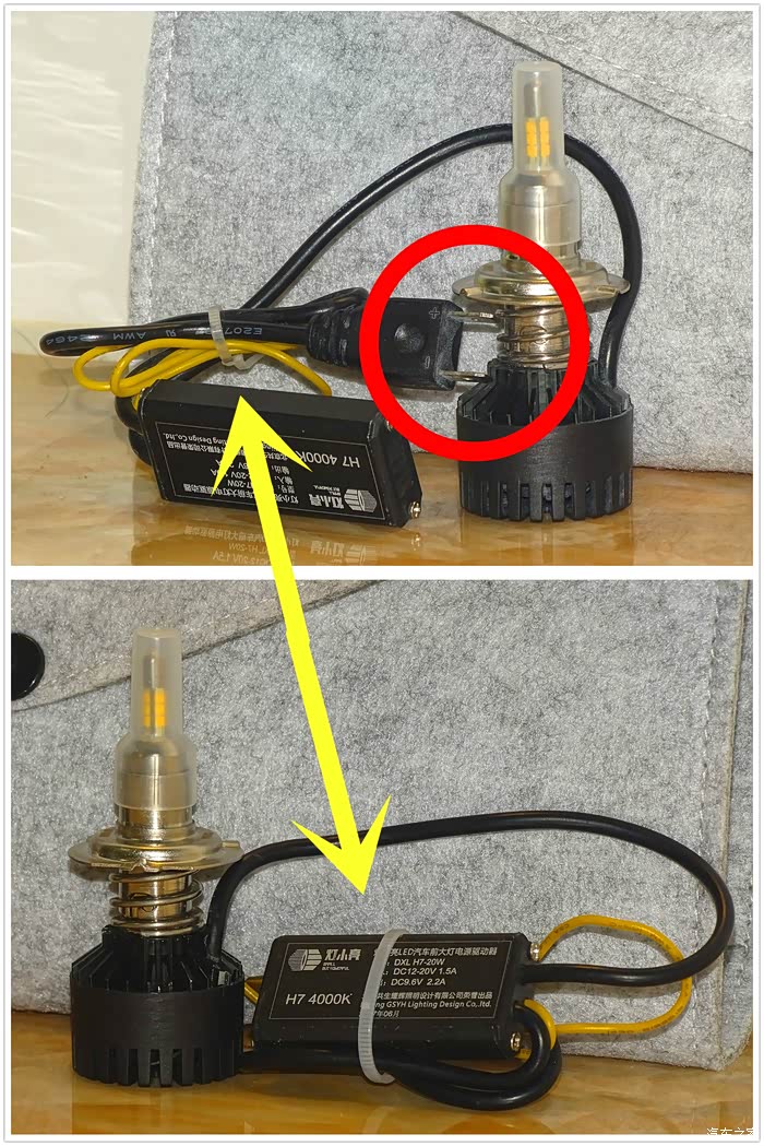 右侧为旧LED灯,左侧为索赔过的新LED灯。